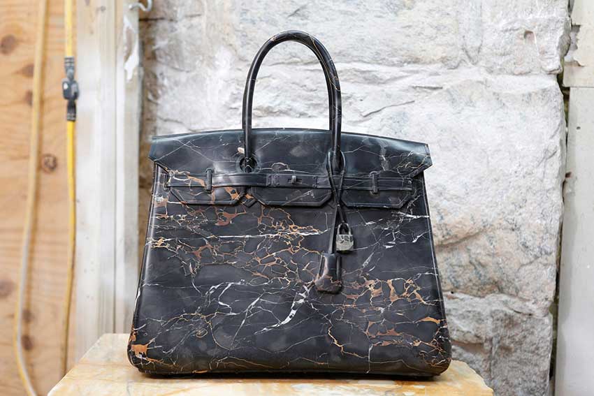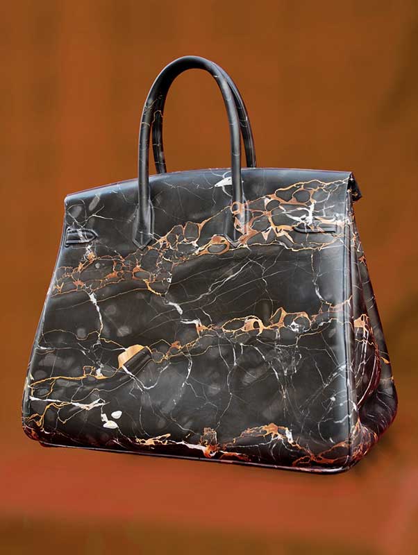 Barbara Segal est une telle artiste, avec un style et une vision personnels, permettant une déclaration unique pour la pierre naturelle, capable de conduire à un voyage de découverte de soi pour chacun. Qui aurait imaginé que la pierre naturelle puisse être polie d'une manière qui lui permette de transmettre autant d'émotion ? Imaginez les émotions développées par une femme à la vue d'un sac en marbre Birkin, si élégant en termes d'apparence et de texture, mais trop lourd pour pouvoir le soulever du piédestal ? Impuissant ou simple reflet de la nature humaine ? Est-il possible que nous développions une passion excessive pour les choses matérielles, ce qui finira par entraver notre propre être ?