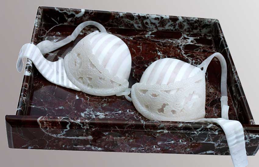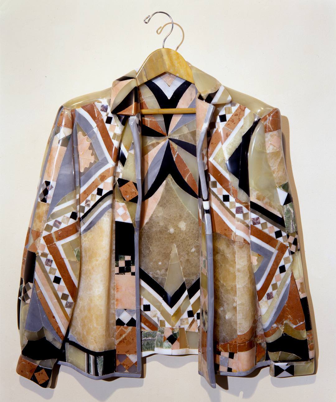 Tous ces objets aux histoires cachées étaient en pierre ; de nombreux types et formes de marbre, d'émeraude, d'onyx, de sodalite, de calcite et de nombreux autres minéraux. Des créations Chanel aux sacs à main Hermès, en passant par les vestes en cuir, les pièces de lingerie et les robes, toutes reposent sur des couches de pierre brute qui prennent la forme de vérités sociales. Une œuvre d'art colossale, minutieusement achevée et finie dans les moindres détails, dans le but de créer des objets qui exploitent profondément notre vie sociale.